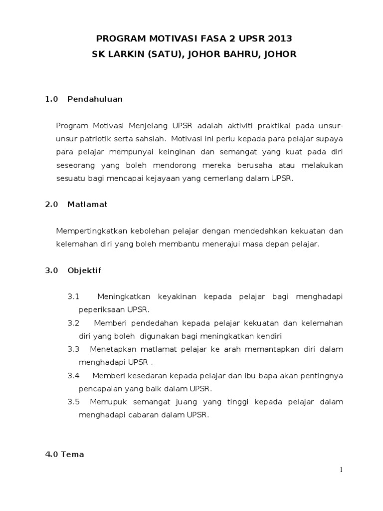 Here are some resumes of keywords to help you find your search the copyright owner is the original owner this blog does not own the copyright of this image or post but this blog summarizes a selection of keywords. Kertas Kerja Program Kecemerlangan UPSR 2012. SK TAMAN DAYA 81100 JOHOR BAHRU JOHOR KERTAS KERJA PROGRAM MOTIVASI PERSEDIAAN UPSR 2015 f KERTAS KERJA PROGRAM MOTIVASI PERSEDIAAN AKHIR UPSR 1.