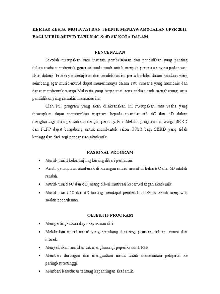 Contoh Kertas Kerja Motivasi Upsr